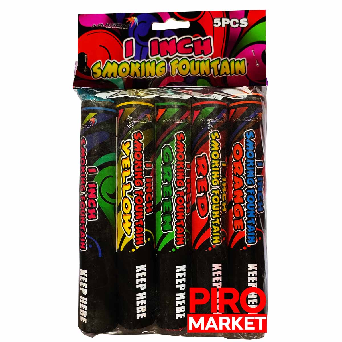 Набір кольорового диму МА0511 Smoking Fountain складається з 5 димових шашок червоного, синього, зеленого, жовтого і помаранчевого кольорів. Кольоровий дим призначений для використання на фотосесії, а також для відеозйомки. Перевагою представленого виробу є густий дим, насичений колір і простота експлуатації. Димова шашка відрізняється зручною формою трубки, яку дозволено тримати в руках під час горіння, завдяки чому з'являється можливість створювати щільну димову завісу навколо себе для знімків. Циліндрична форма дозволяє підпалювати виріб не тільки в руках, але і ставити димову шашку на землю, якщо того вимагає сценарій.